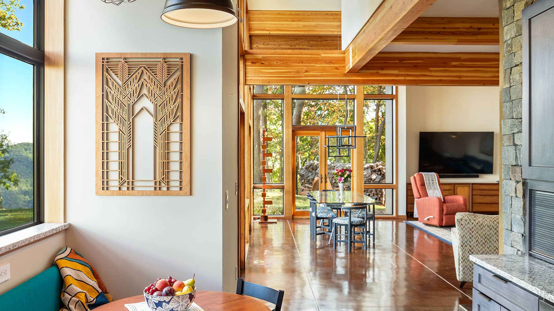 “At any moment of the day or night, we feel we are a part of this magical landscape that nurtures our souls. I believe that one of Frank Lloyd Wright’s missions was to take away the barriers to feeling confined by a home: for the inside to blend effortlessly into its surrounding outdoor environment.”